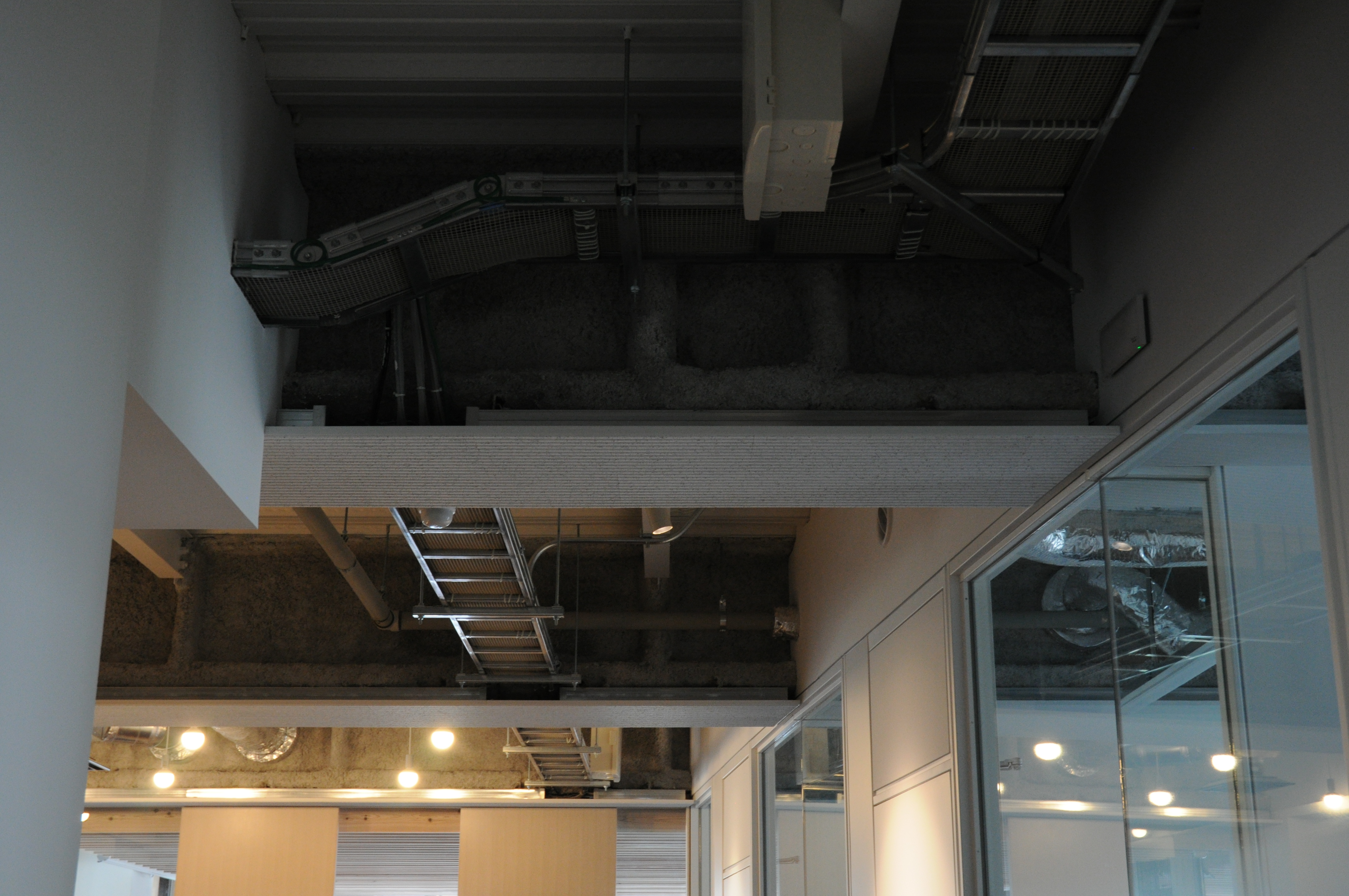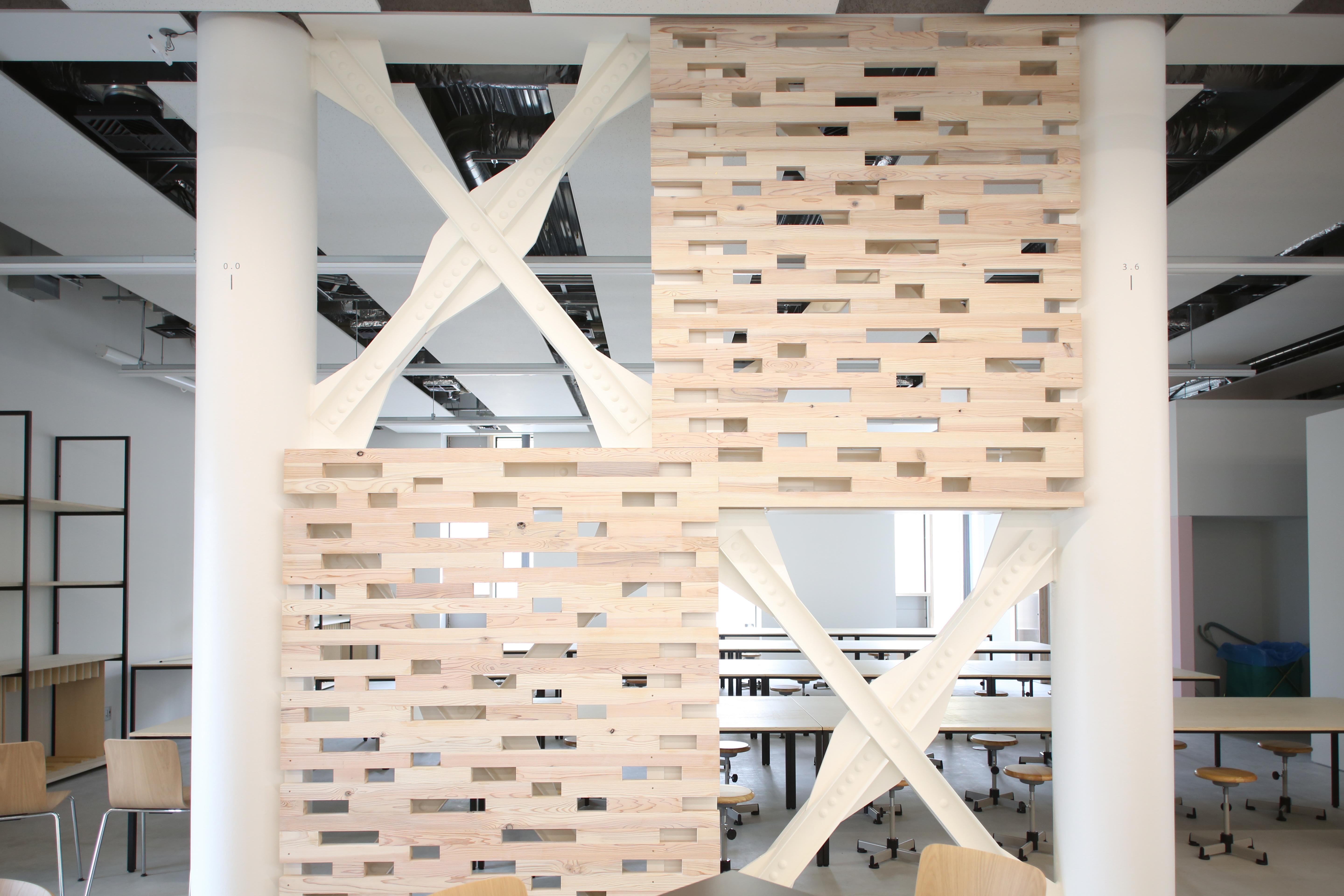 更にここで注目していただきたいのはこの剥き出しの構造がインテリアデザインとして成立し、スタイリッシュな印象を与えているということだ。学生達はこういったデザイン手法も自然と身につけることになる。